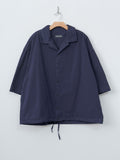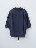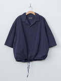 A boxy, half sleeve shirt made from Casey Casey's signature washed paper cotton. Features a spread collar, button front closure, a drawstring at the hem, and corozo buttons. Oversized fit.