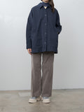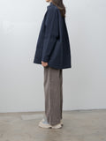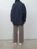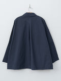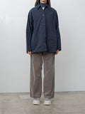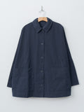 A boxy chore jacket from Casey Casey featuring a midweight cotton with a washed, textured finish. The design features a spread collar, dropped shoulders, corozo button closure, oversized patch pockets and slanted side pockets on the front and a box pleat at the back. Relaxed fit.