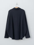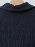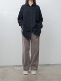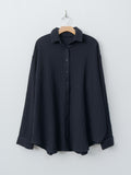 An overshirt from Casey Casey crafted from a lightweight, textured cashmere wool blend with a superb soft hand and elegant drape. It features a classic shirt collar, corozo button front, and a curved hem.