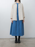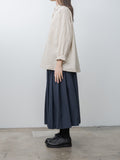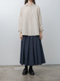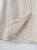 Casey Casey's signature Waga long sleeve shirt featuring a lightweight cotton wind stripe fabric. It has a washed finish and a soft, crinkled textured hand. Features a button front with corozo buttons, dropped shoulders, long sleeves with cuffs that can be rolled up, and a curved hem with a longer length in the back.