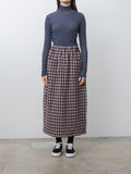 An easy skirt crafted from a lightweight alpaca–wool blend in a check pattern. The silhouette is clean and structured, while the fabric adds texture and depth of color. Details include small front patch pockets and a fully elasticated waistband for comfort.