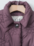 A lightly padded puff jacket featuring all-over floral embroidery. It features an oversized, boxy silhouette, a classic collar, button front closure, dropped shoulders and front patch pockets.