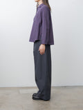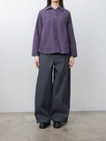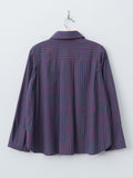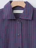 A cropped, boxy fit shirt jacket crafted from a red cotton check with a soft hand. The front panel is partially lined for a structured shape. Details include a spread collar, mini front pocket, side pockets, mother of pearl buttons and a rounded hem with short side slits.
