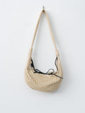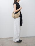 A soft 2-in-1 bag developed in collaboration with Filt, the historic French manufacturer of net shopping bags founded in 1860. Inspired by the Croissant line and everyday utility, it combines an openwork nylon net exterior with a leather tie closure with a removable nylon interior bag with snap fasteners. The inner bag features a zipper closure with extended pull tab and a zipped interior pocket with leather Lemaire-embossed label.
