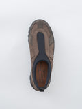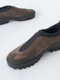 The 1728NC is a modified slip-on reinterpretation of the classic German Military Trainer, built for ease, flexibility, and off-road functionality. The upper combines premium Italian nubuck leather with stretch neoprene for an adaptive fit that moves naturally with the foot. A full stretch lining ensures effortless on-off comfort while maintaining a close, secure feel. A thick cupsole, designed with tall sidewalls that “cup” the upper, delivers excellent grip and cushioning, and the original rubber outsole is a reproduction of a 1970s military design.