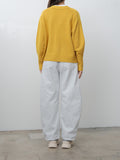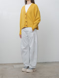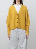 A relaxed fit v-neck cardigan made from a soft merino wool in a mid-gauge knit. It features sculpted balloon sleeves and elongated cuffs that balance the slightly cropped body.