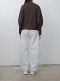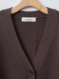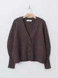 A relaxed fit v-neck cardigan made from a soft merino wool in a mid-gauge knit. It features sculpted balloon sleeves and elongated cuffs that balance the slightly cropped body.