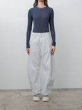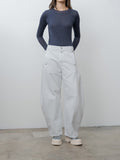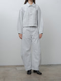 A Sayaka Davis signature, the Barrel Denim is a mid-rise style featuring a curved leg shaped by front and back panel seams. This season's iteration is made from organic cotton in Ice Gray, retaining the weight of denim with a softer touch.