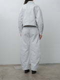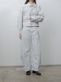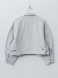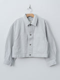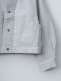 The Cropped Jacket is Sayaka's take on the denim jacket featuring a boxy silhouette with roomy sleeves and a shortened length. It is made from organic cotton denim in Ice Gray, retaining the classic weight of denim with a softer touch. The design is finished with oversized, two-way chest pockets with as a standout detail.