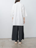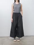 A cropped wide-leg trouser with a voluminous silhouette, made from a lightweight, crisp cotton poplin. Features an elasticated waist with inner drawstring, side seam pockets, and a back patch pocket.