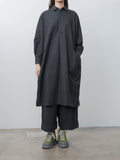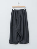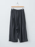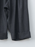 The Baker Trouser is a cropped, voluminous trouser with front pleats and deep turned-up cuffs. This iteration is crafted from a soft wool-cashmere flannel blend in a charcoal color. Details include a low back patch pocket, hidden side pockets, and a fully elasticated waist with an inner drawstring.