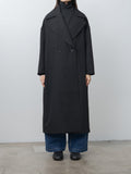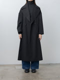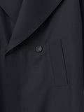 The Groundsman Coat is a long coat with a clean, tapered silhouette that narrows gently at the leg, amplifying the volume at the shoulders. It is crafted from a lightweight, wool herringbone fabric in a bespoke compact suiting woven in Japan. Details include large lapels, soft dropped shoulders, welt side pockets, and 3D corozo button closure. Relaxed fit.