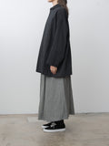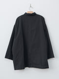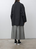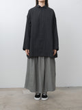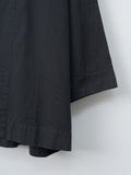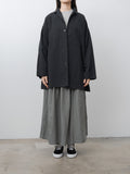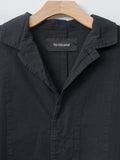 A casual short coat with an A-line silhouette made from a midweight, high density cotton twill. The garment-dye process creates natural puckering throughout, while natural dye gives the fabric a deep, nuanced black tone. Details include a short collar, hidden placket, dropped shoulders, side pockets and back vent.