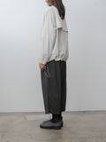 A boxy shirt jacket made from cotton gabardine dyed with natural pigments extracted from discarded vegetables. With over 90% natural dye content, the fabric has a gentle, soft look and feel with further bio-finishing. It features an umbrella yoke across the back, extended sleeves with dropped shoulders, front patch pockets and a drawstring hem for adjustable styling.