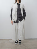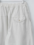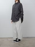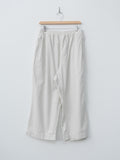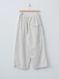 Cropped, wide leg easy pants made from midweight cotton Katsuragi fabric. A catch-washer finish gives the material a sharp, wrinkled texture, while garment dyeing enhances the casual, worn-in look. Because each piece is hand-finished, the wrinkle expression will vary uniquely from garment to garment. The design includes a mock fly, front-side pleats for added volume through the hips, an elastic waistband with an internal drawstring, side pockets and a back pocket.