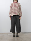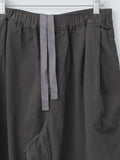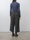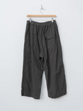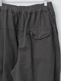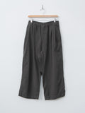 Cropped, wide leg easy pants made from midweight cotton Katsuragi fabric. A catch-washer finish gives the material a sharp, wrinkled texture, while garment dyeing enhances the casual, worn-in look. Because each piece is hand-finished, the wrinkle expression will vary uniquely from garment to garment. The design includes a mock fly, front-side pleats for added volume through the hips, an elastic waistband with an internal drawstring, side pockets and a back pocket.