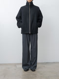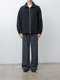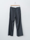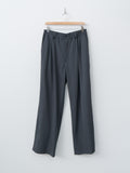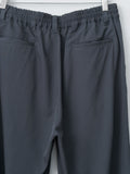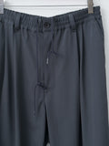 A wide-leg easy trouser featuring double front pleats, crafted from Super 120’s washable wool. The fabric is treated with softening and washer tumbler processes to achieve a natural texture and relaxed drape. Details include a wide elasticated waistband with inner drawcords, side pockets, back welt pockets, and a clean, flowing silhouette.