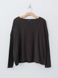 A loose fit pullover sweater featuring a rounded wide neck, dropped shoulders, slim full length sleeves, and clean overlocked hem and cuffs. The signature JP fabric is lightweight, plush and bouncy.