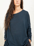 From Album di Famiglia a delicate sheer pullover knit. It's easy, breezy, and works well over tanks and tees with its wide neckline. The fabric has a fun bounce and drape that gives an effortless look as a layering piece. The exaggerated dropped shoulders flow into a slim fitting arm that feels elegant and stylish.