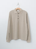 A relaxed-fit polo shirt crafted from specially knitted Suvin cotton jersey, offering a soft, smooth touch with a subtle sheen. The design features a classic polo collar, ribbed cuffs and hem, and articulated two-piece sleeves that enhance the shape and drape.