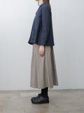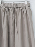 A fluid midi skirt with a soft A-line silhouette made from a lightweight woven cotton. Features an elasticated waistband with fine gathered pleats, side seam pockets, and a clean hem falling to mid-calf length.