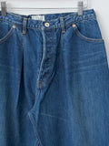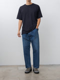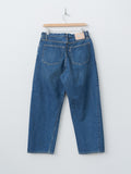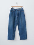 A collaboration with CIOTA, these single-pleat tapered jeans are crafted from premium Japanese denim and finished with a vintage-worn wash. They feature a high rise, four-pocket construction, copper rivet reinforcements, and a leather back patch. The side seams are clean-finished with a distinctive turned-seam construction, giving the leg a subtle sculpted line and enhancing the overall drape and structure.
