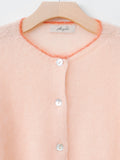 A lightweight mohair cardigan with a soft, airy texture and a subtly sheer finish. It features a contrast edge at the neckline, cuffs and hem for a quiet accent, crew neckline, mother-of-pearl button closure, and finely ribbed cuffs and hem. Relaxed fit.