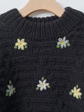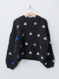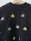 A hand-knit sweater crafted in Peru featuring a chunky textured stitch and one-of-a-kind all over floral embroidery. The knit has a relaxed silhouette with a slightly cropped length and voluminous arms. Details include a rounded neckline, dropped shoulders and ribbing at the collar, cuffs and hem.