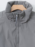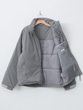 A lightweight outerwear piece padded for warmth and comfort. It is made from high-density weather cloth woven with ultra-fine polyester and nylon yarns, finished with a water-repellent coating. The design features raglan sleeves for ease of movement, interior mesh pockets, a zip front with a high neck, zip side pockets, zip pit vents, adjustable cuffs, and a drawcord hem for a customizable fit.