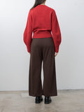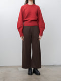A crewneck pullover with a compact, cropped silhouette and softly rounded sleeves, crafted from fine lambswool with a cashmere-like softness. The knit has a warm, textured surface and a gentle hand. Details include a ribbed neckline, cuffs, and hem and a subtle hand-embroidered “U” on the cuff.