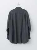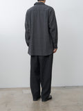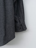 From Yoko Sakamoto, a classic shirt elevated through jacket-style 3D pattern construction. Crafted from a luxurious blend of wool, cotton, and cashmere in a houndstooth pattern, this fabric offers rich visual texture along with refined softness and warmth. Details include a wide boxy fit, dropped shoulders, buttoned front and cuffs, a curved hem, and side seam pockets that lend to a subtle jacket-like presence.