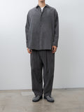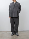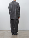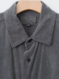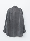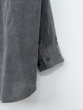 From Yoko Sakamoto, a classic shirt elevated through jacket-style 3D pattern construction. It features an exceptionally soft, micro-wale cotton corduroy that has been garment-dyed in sumi ink for a rich texture and deep tone. Details include a wide boxy fit, dropped shoulders, buttoned front and cuffs, and side seam pockets that lend to a subtle jacket-like presence.